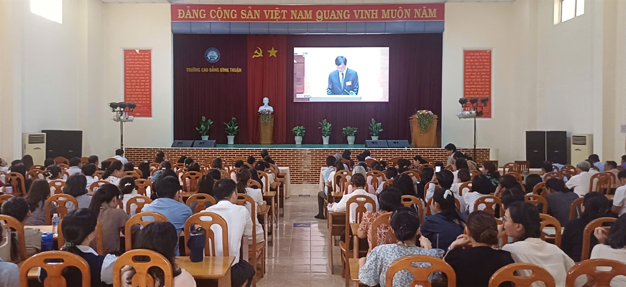 Hội nghị được triển khai bằng hình thức trực tiếp kết hợp trực tuyến toàn quốc. Điểm cầu Trường Cao đẳng Bình Thuận được tổ chức tại Hội trường cơ sở 1.