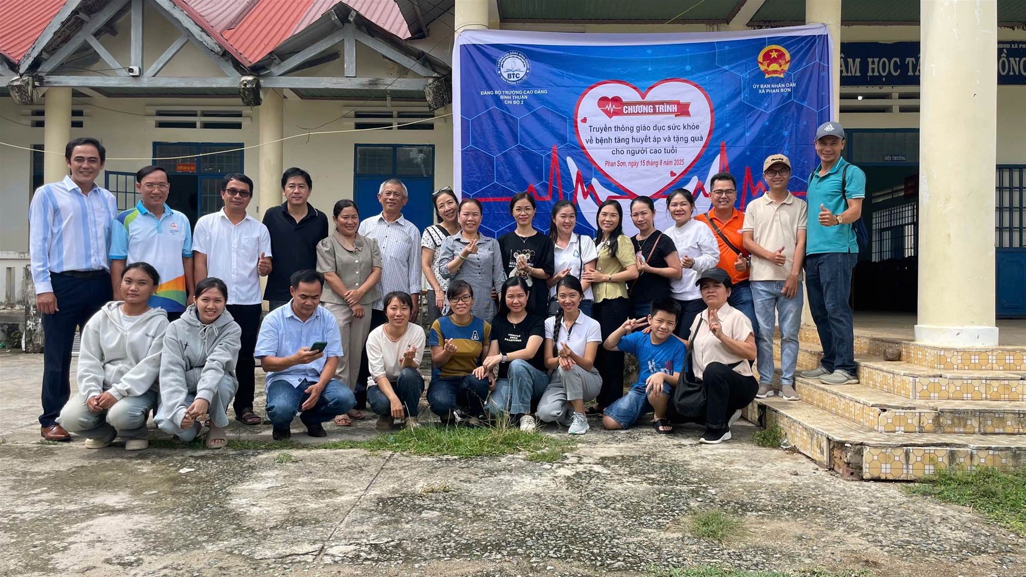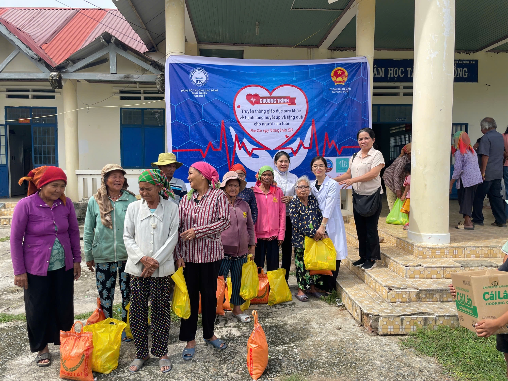 Ngày 15/8/2025, Chi bộ 2 thuộc Đảng bộ Trường Cao đẳng Bình Thuận đã phối hợp với UBND xã Phan Sơn, tỉnh Lâm Đồng tổ chức buổi truyền thông giáo dục sức khỏe và trao quà cho 65 người cao tuổi tại địa phương với chuyên đề "Tuân thủ điều trị và phòng ngừa bệnh tăng huyết áp ở người cao tuổi" tại Hội trường Nhà văn hóa xã..