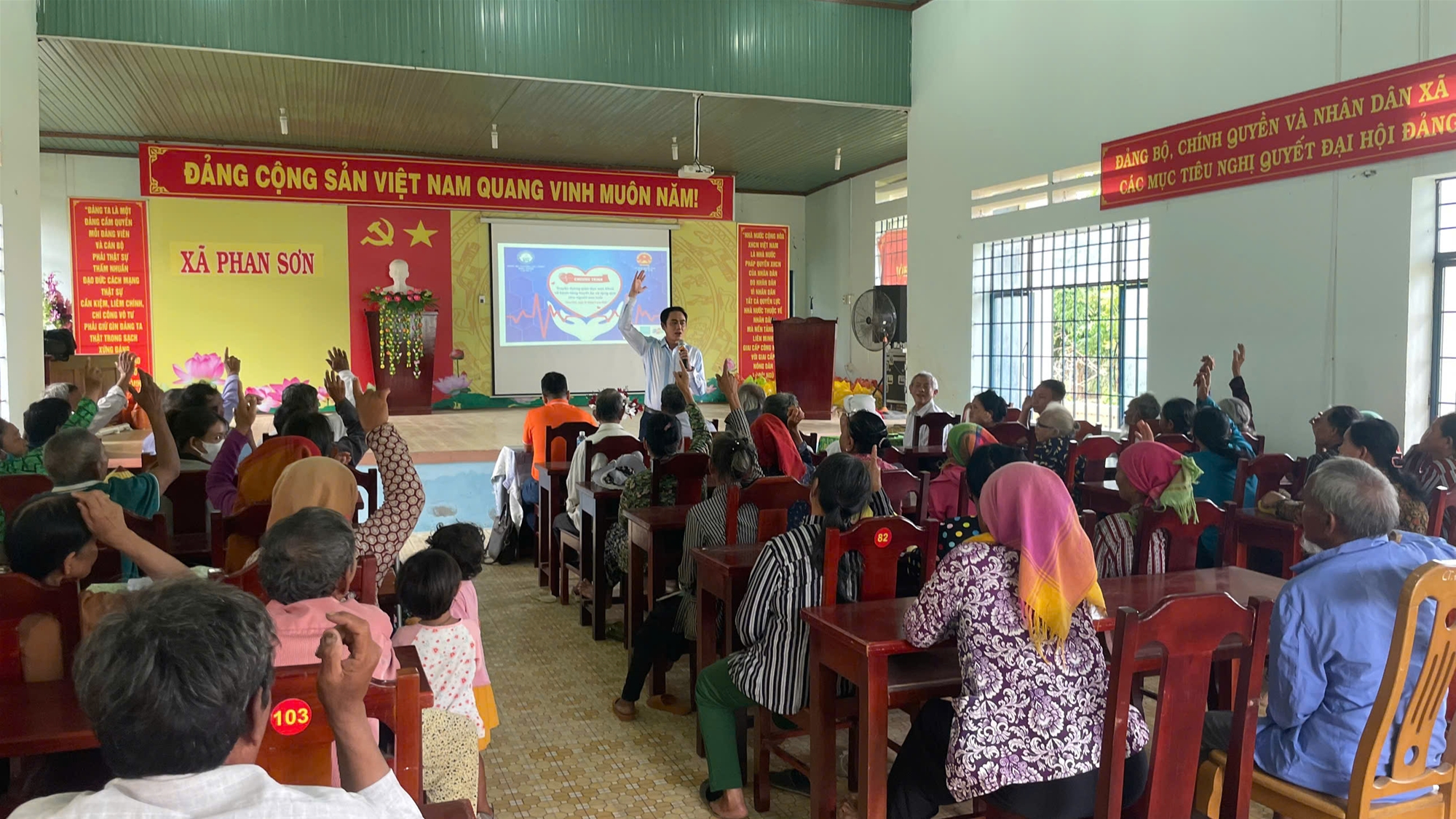 Trước phần tư vấn, người tham dự được kiểm tra huyết áp, đo chỉ số sinh học cơ bản để bước đầu sàng lọc, đánh giá nguy cơ tăng huyết áp. Trên cơ sở kết quả kiểm tra, báo cáo viên đã tư vấn trực tiếp từng trường hợp và phối hợp với trạm y tế xã Phan Sơn tiếp nhận, theo dõi các trường hợp có chỉ số huyết áp cao để hỗ trợ điều trị kịp thời.