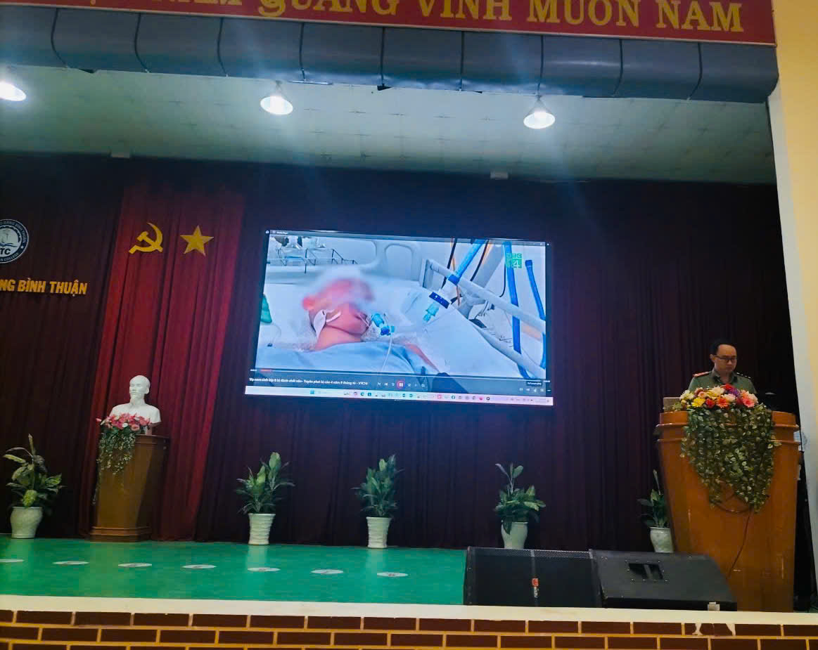 Tại buổi tuyên truyền, 400 học sinh, sinh viên nội trú tại ký túc xá cơ sở 1, 2 và 100 đoàn viên, HSSV năm thứ nhất đã được nghe đồng chí Đỗ Ngọc Khánh – Cán bộ Phòng an ninh bảo vệ chính trị nội, Công an tỉnh chia sẻ về tình hình bạo lực học đường diễn ra trong thời gian gần đây, những vụ việc điển hình liên quan đến bạo lực học đường trong HSSV diễn ra trên địa bàn tỉnh trong thời gian qua kể các bạo lực học đường diễn ra trên không gian mạng.