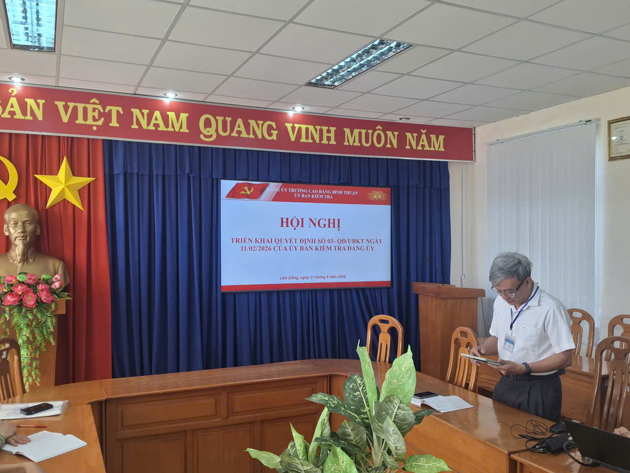 Trong Quý I năm 2026, Ủy ban Kiểm tra (UBKT) Đảng ủy Trường Cao đẳng Bình Thuận đã triển khai đồng bộ, hiệu quả công tác kiểm tra, giám sát (KTGS), góp phần giữ vững kỷ cương, kỷ luật và nâng cao năng lực lãnh đạo, sức chiến đấu của toàn Đảng bộ.
