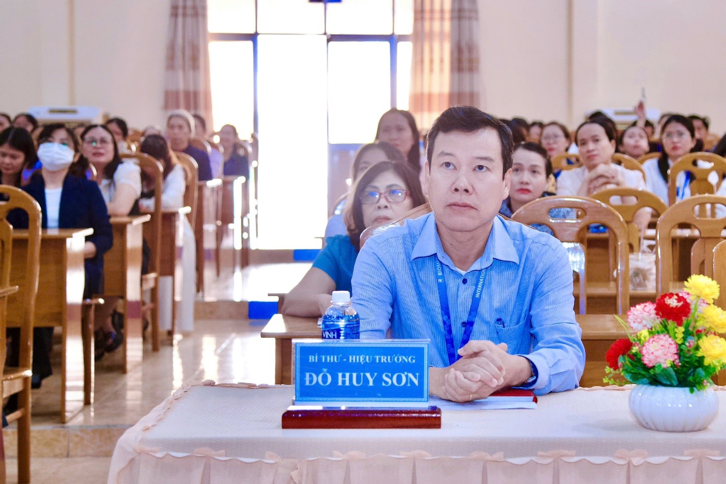 Dự Hội nghị có đồng chí Đỗ Huy Sơn - Bí thư Đảng ủy, Hiệu trưởng; đồng chí Trần Thị Kim Chung - Phó Bí thư Đảng ủy, Phó Hiệu trưởng và toàn thể đảng viên thuộc Đảng bộ Trường.