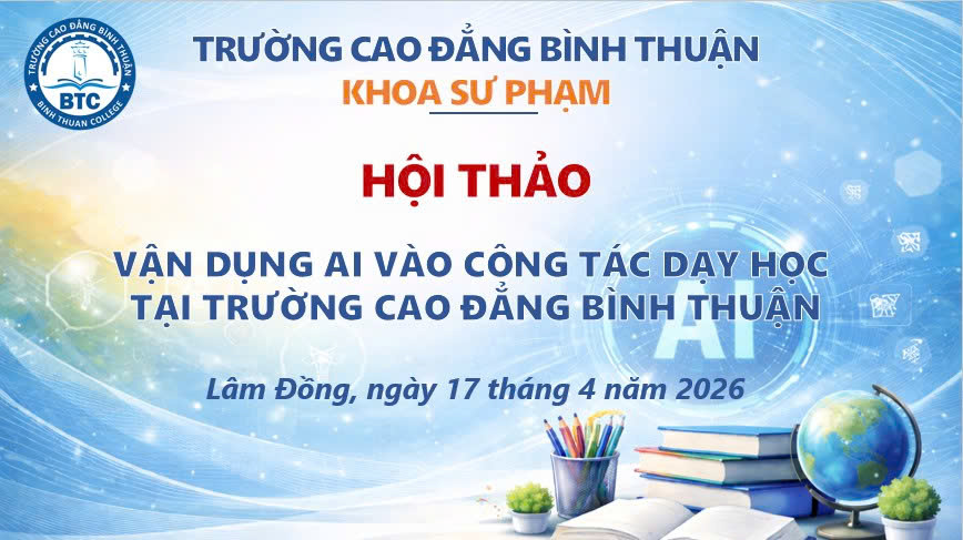 Ngày 17/4/2026, Khoa Sư phạm, Trường Cao đẳng Bình Thuận đã tổ chức Hội thảo khoa học cấp khoa lần II, năm học 2025 – 2026 với chủ đề “Vận dụng AI vào công tác dạy học tại Trường Cao đẳng Bình Thuận”.