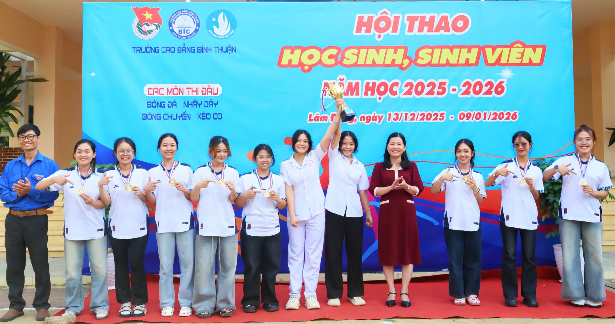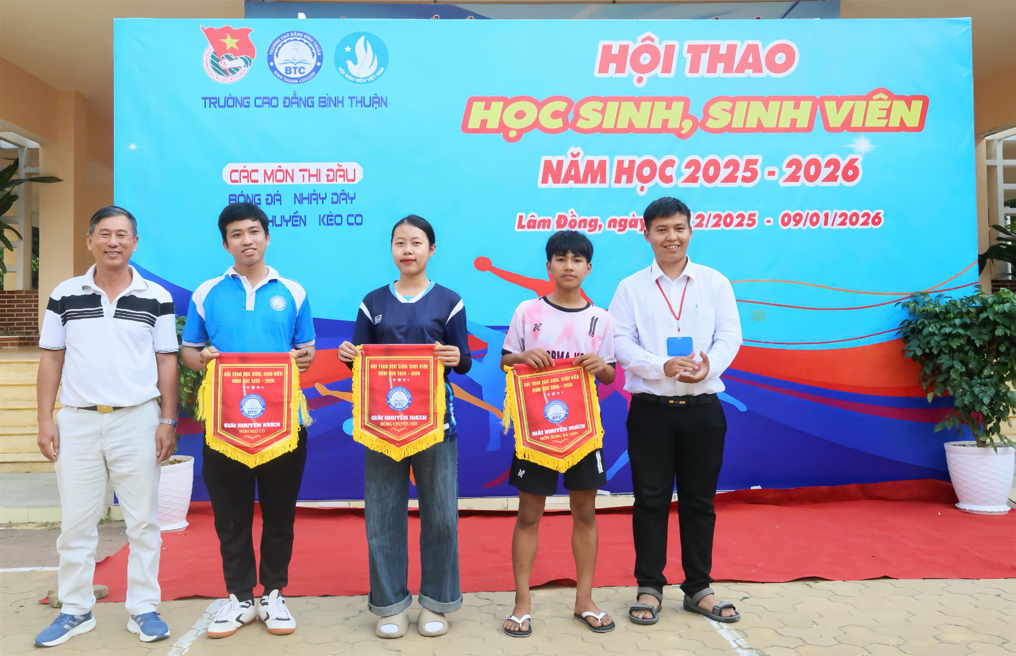 Hội thao Học sinh, sinh viên năm học 2025 - 2026 được tổ chức theo Kế hoạch số 134/KH-CĐBT ngày 17/11/2025, diễn ra từ ngày 13/12/2025 đến ngày 09/01/2026. Hội thao thu hút 74 đội thi đấu với 683 vận động viên, tranh tài ở 05 nội dung thi đấu gồm: Nhảy dây; Kéo co; Bóng chuyền hơi nam - nữ phối hợp; Bóng đá nam và Bóng đá nữ (05 người).