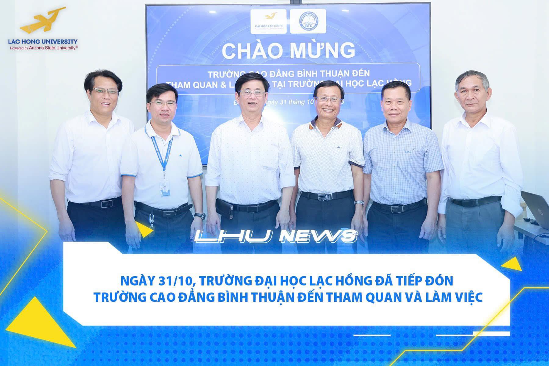 Hợp tác đào tạo giữa Trường Đại học Lạc Hồng và Trường Cao đẳng Bình Thuận được chính thức triển khai từ tháng 01/2024. Trong gần hai năm hoạt động, chương trình đã cho thấy hiệu quả thiết thực trong việc mở rộng cơ hội học tập bậc đại học cho người học ngay tại địa phương, với nhiều ngành nghề đáp ứng nhu cầu nhân lực thực tế; đồng thời góp phần xây dựng và phát triển nguồn nhân lực chất lượng cao, phù hợp với định hướng phát triển kinh tế – xã hội của khu vực. Ngày 31/10/2025, trong chuyến tham quan và làm việc tại Trường Đại học Lạc Hồng, hai bên đã trao đổi và thống nhất định hướng phát triển hợp tác đào tạo trong giai đoạn tiếp theo. Buổi làm việc mở ra thêm nhiều cơ hội tăng cường kết nối, mở rộng quy mô và nâng chất chương trình đào tạo phục vụ địa phương.