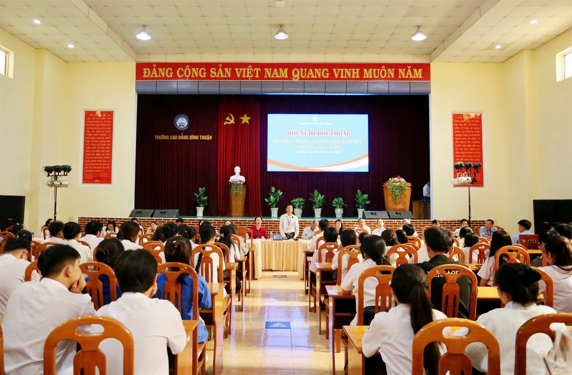 Chiều ngày 08/12/2025, tại Hội trường Cơ sở 1, Nhà trường đã tổ chức thành công buổi đối thoại giữa Hiệu trưởng với học sinh, sinh viên năm học 2025–2026. Đây là hoạt động thường niên đầy ý nghĩa nhằm lắng nghe, chia sẻ và giải quyết những tâm tư, nguyện vọng của HSSV trong quá trình học tập và rèn luyện.