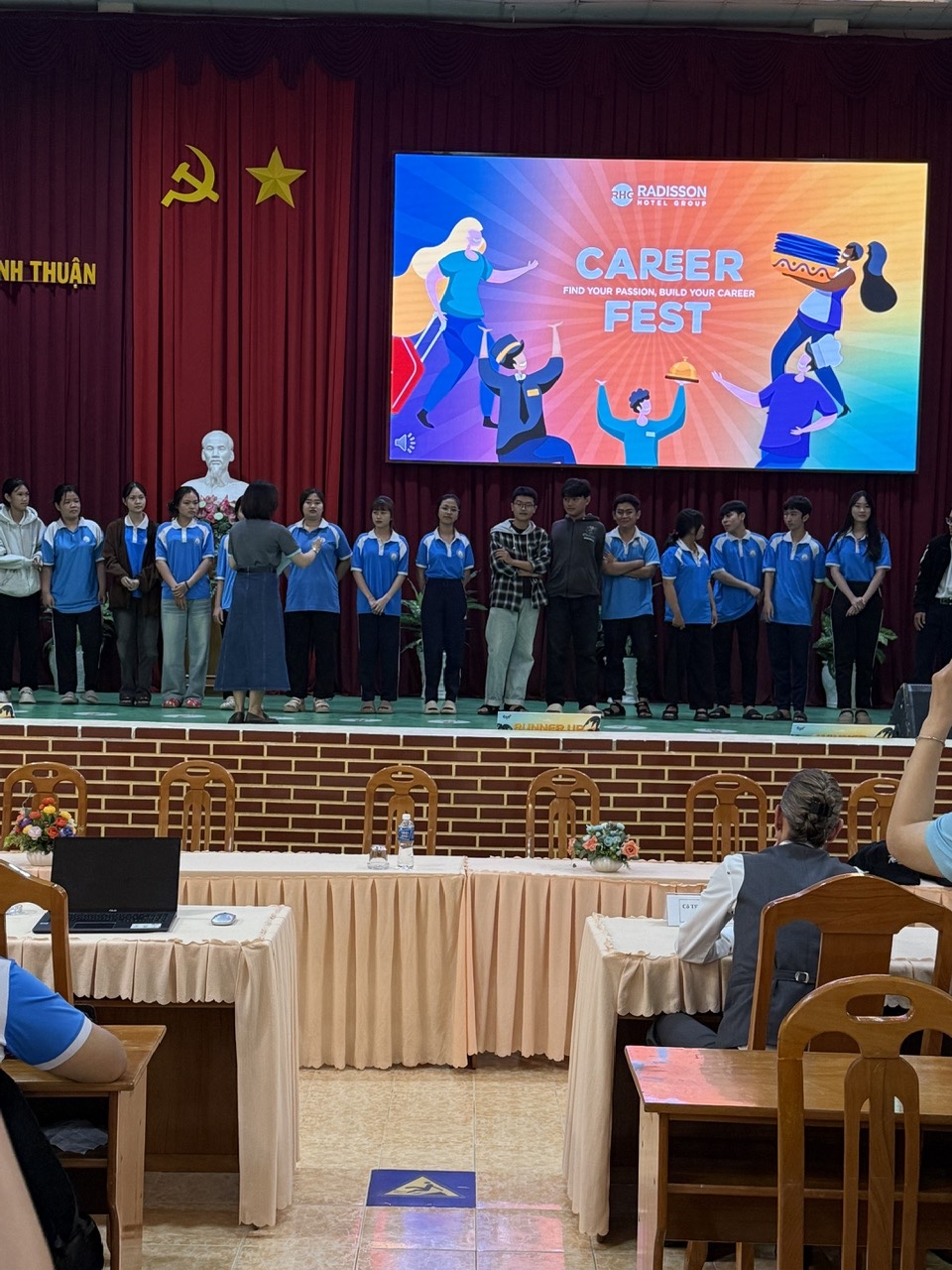 Trong khuôn khổ chương trình, Muine Bay Resort đã chia sẻ về mô hình quản trị, văn hóa doanh nghiệp và các yêu cầu tuyển dụng thực tế; Radisson Resort mang đến những câu chuyện nghề, kinh nghiệm quý báu và những tình huống xử lý thực tế trong lĩnh vực du lịch – khách sạn. Không khí tọa đàm sôi nổi, phần minigame giao lưu và phỏng vấn nhanh giữa HSSV với khách mời, tạo nên nhiều khoảnh khắc ý nghĩa và gần gũi.