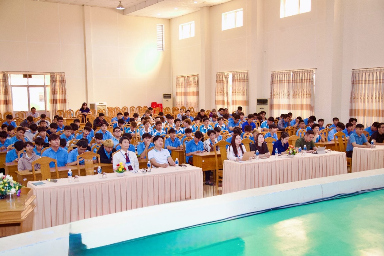 Phần giao lưu, hỏi đáp diễn ra vô cùng sôi nổi. Các bạn sinh viên đã chủ động đặt ra nhiều câu hỏi thiết thực xoay quanh cách nhận biết công việc phù hợp, giao tiếp với các bộ phận nghiệp vụ, chế độ hỗ trợ thực tập sinh, hay cách vượt qua sự bỡ ngỡ khi lần đầu tiếp xúc với các dây chuyền sản xuất hiện đại.