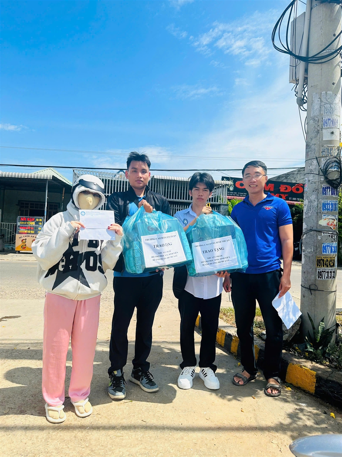 Sáng ngày 01/11/2025, đại diện Trường Cao đẳng Bình Thuận đã trực tiếp đến thăm, trao tặng thực phẩm và nhu yếu phẩm cho 16 gia đình học sinh, sinh viên tại các xã Hàm Thuận Bắc, Hàm Thuận, Hàm Thắng, Hàm Liêm; đồng thời trao hỗ trợ tiền mặt cho 67 học sinh, sinh viên nhằm động viên tinh thần, giúp các em vượt qua khó khăn, ổn định cuộc sống và tiếp tục đến trường.