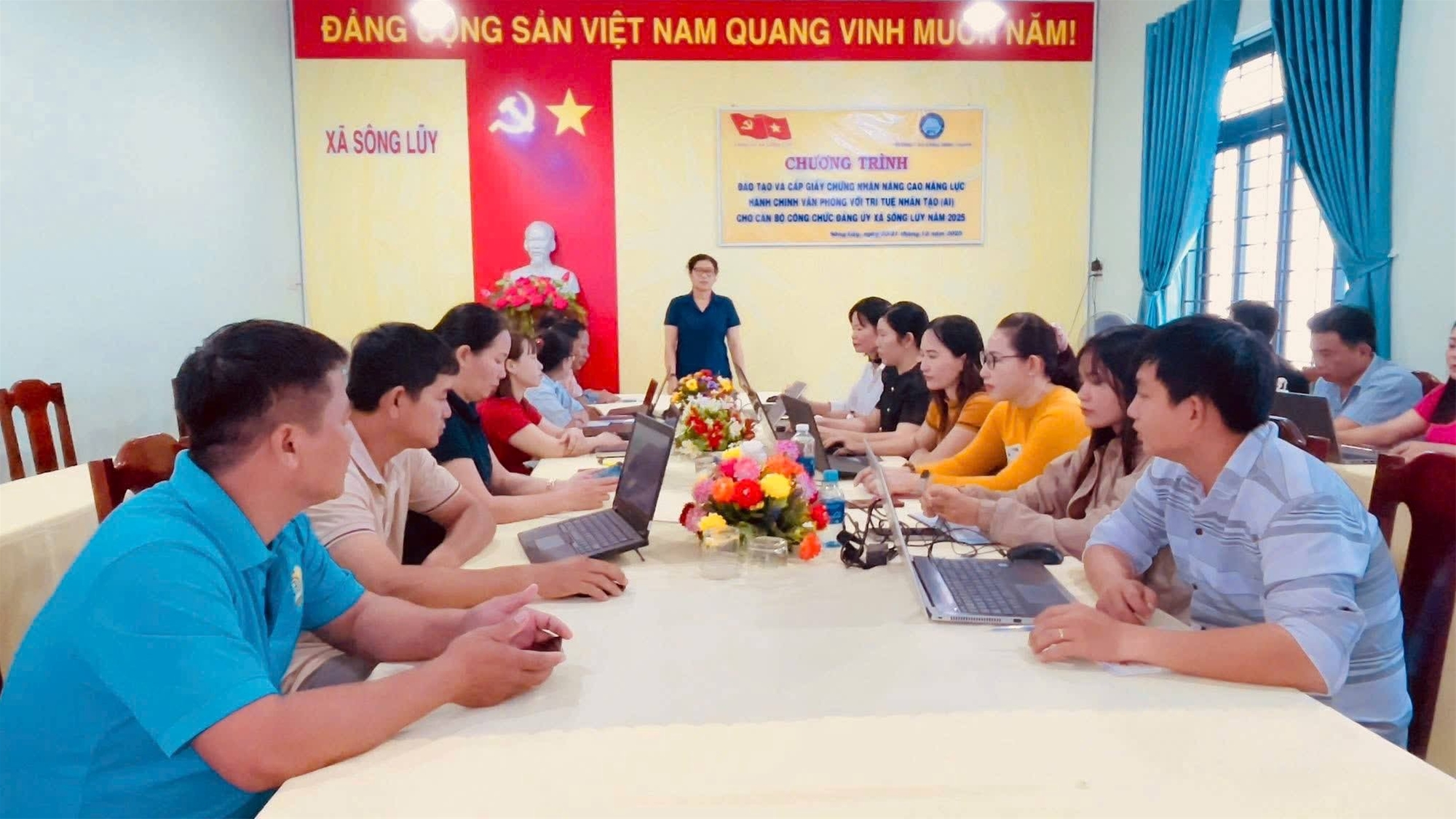Với tinh thần "Cầm tay chỉ việc - Học đi đôi với hành", đội ngũ giảng viên của Trung tâm Ngoại ngữ - Tin học đã hướng dẫn những công cụ thực chiến nhất, dễ sử dụng nhất, kỳ vọng sau khóa học này, mỗi cán bộ xã Sông Lũy sẽ có thêm một "người trợ lý số" bên cạnh mình, giúp giảm bớt áp lực giấy tờ và nâng cao hiệu suất công vụ