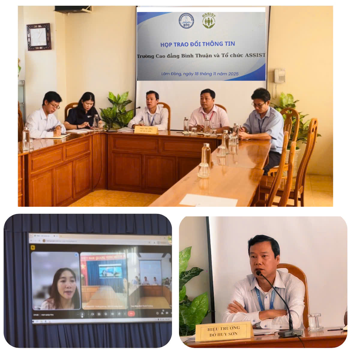 Sáng ngày 18/11/2025, Trường Cao đẳng Bình Thuận đã có buổi làm việc trực tuyến với Tổ chức ASSIST - tổ chức phi chính phủ quốc tế uy tín, được thành lập năm 2003, có mặt tại Việt Nam từ năm 2007 (đăng ký hoạt động chính thức năm 2017), tập trung vào các lĩnh vực thiết thực như đào tạo nghề, bảo vệ môi trường và phát triển nguồn nhân lực.