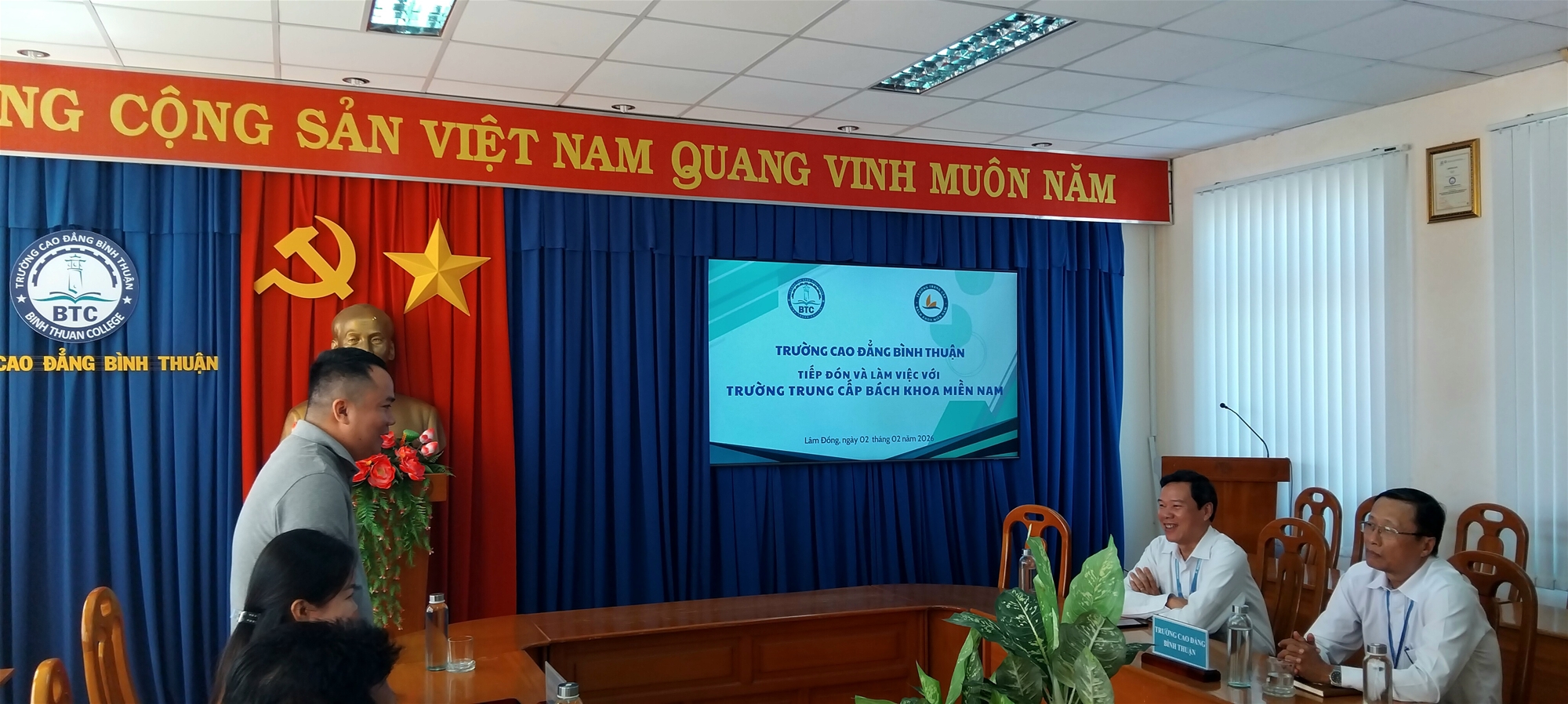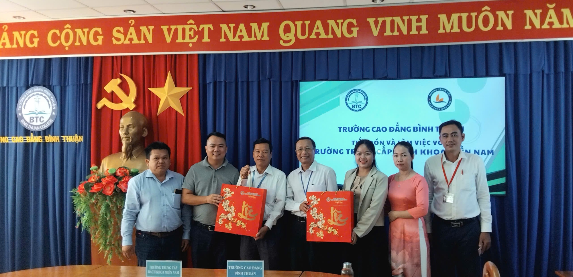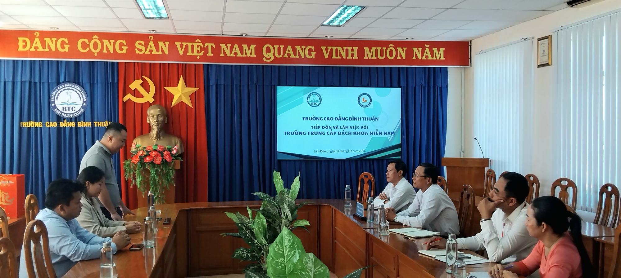 Sáng ngày 02/02/2026, Trường Cao đẳng Bình Thuận đã có buổi tiếp đón và làm việc với Trường Trung cấp Bách Khoa Miền Nam nhằm trao đổi, thúc đẩy hợp tác trong công tác đào tạo.