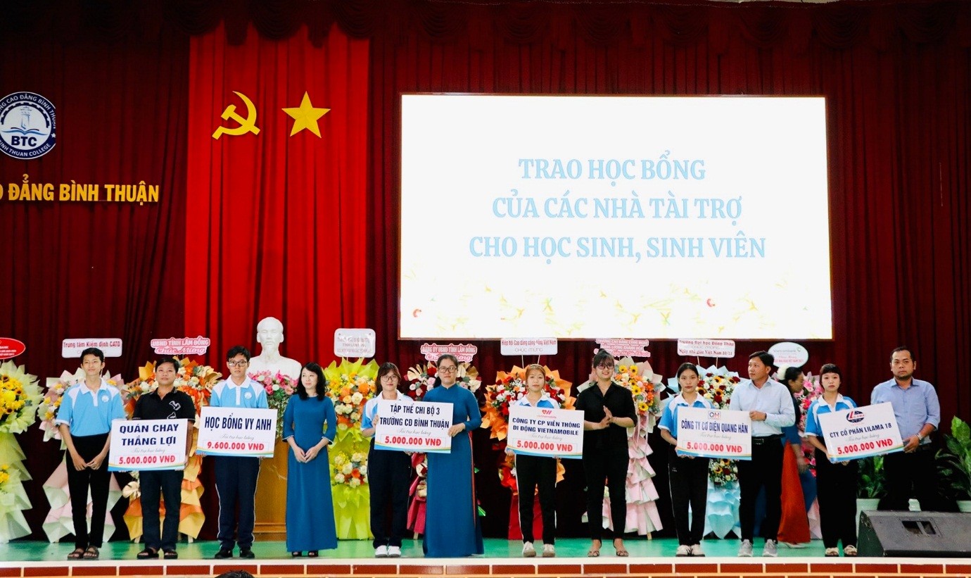 Nhân dịp này, 12 cá nhân là VC, NLĐ của Trường vinh dự được Chủ tịch UBND tỉnh tặng Bằng khen vì có nhiều thành tích xuất sắc từ năm học 2023-2024 đến năm học 2024-2025 và 02 cá nhân nhận danh hiệu Chiến sỹ thi đua cấp tỉnh. Nhà trường cũng đã tiếp nhận các nguồn hỗ trợ học bổng của doanh nghiệp và trao tặng 142 suất học bổng với tổng trị giá hơn 280 triệu đồng cho học sinh sinh viên có hoàn cảnh khó khăn./.