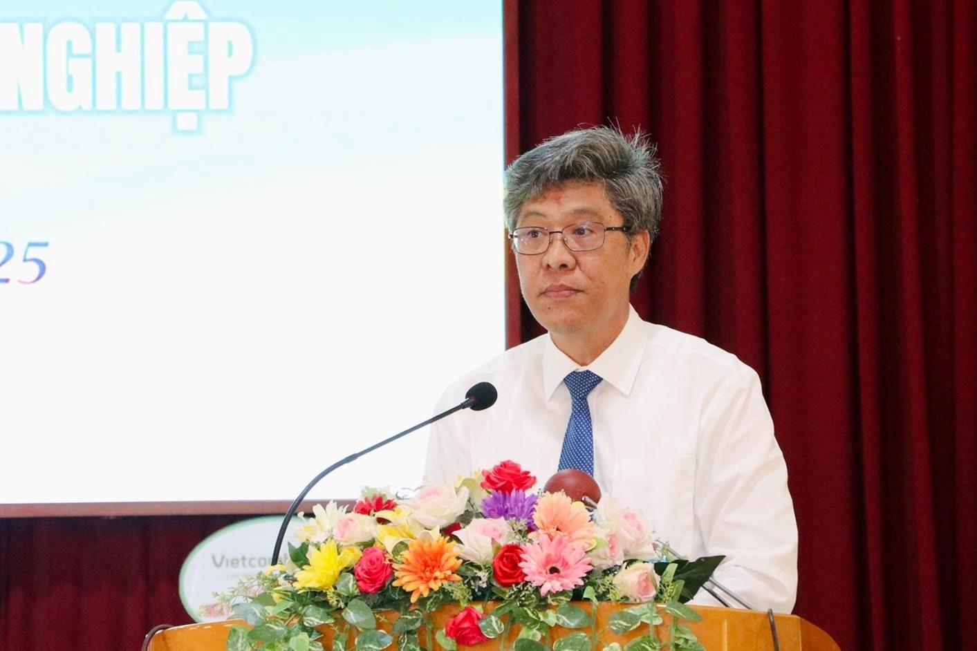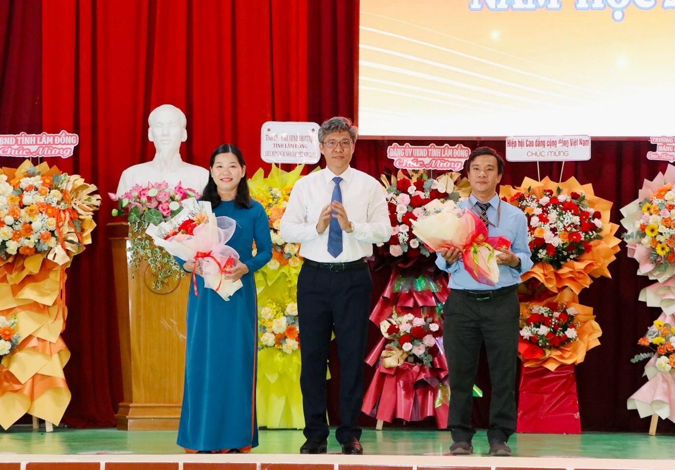 Phó Chủ tịch UBND tỉnh Nguyễn Minh tặng hoa chúc mừng nhà trường
