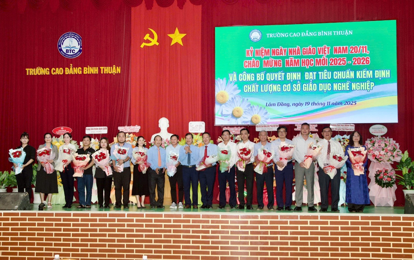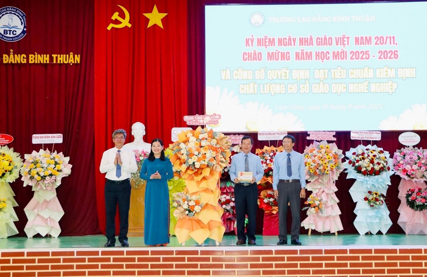 Sáng 19/11/2025, Trường Cao đẳng Bình Thuận long trọng tổ chức kỷ niệm Ngày nhà giáo Việt Nam 20/11, chào mừng năm học mới 2025-2026 và công bố Quyết định đạt tiêu chuẩn kiểm định chất lượng cơ sở giáo dục nghề nghiệp.